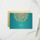 Cartões de resposta de casamento indiano azul teal verde elegantes e modernos. A cor do fundo pode ser alterada. Bela flor Mandala com design dourado e diamante. Parte de trás tem folha de ouro falso. Modelos editáveis - adicione seu texto. Entre em contato com o designer para outras variações.