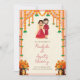 Este modelo de cartões de casamento hindu para download é um que você pode facilmente personalizar para combinar com a decoração e o tema do seu casamento hindu. Este modelo de convite de casamento hindu digital DIY ou convites hindus é complementado com flores e folhas, perfeito para os cartões do seu casamento indiano.