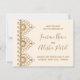 O modelo de convite de casamento desi clássico apresenta um design elegante e ousado na frente e uma mensagem personalizável no verso. Envie a mensagem do seu convite de casamento para amigos e familiares usando este lindo cartão. Este é o convite de casamento indiano perfeito para qualquer noiva e noivo muçulmanos.