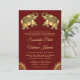 Surpreenda seus convidados com este elegante convite de casamento indiano que apresenta elefantes decorados lindamente contra um fundo vermelho escuro. Basta adicionar os detalhes do seu evento neste modelo fácil de usar para torná-lo um convite único. Este cartão é totalmente personalizável. Todos os textos são editáveis e a cor do fundo pode ser facilmente alterada para o que melhor lhe convier. Vire o cartão para revelar uma textura de folha de ouro falso no verso do cartão.