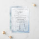 Convite de Casamento | Silver Blue Winter Wonderland - Design original por ©WhimsicalArtwork™ - Uma cena de inverno em aquarela azul prateada com árvores de pinheiro evergreen pintadas à mão e apenas o suficiente de neve nos galhos para lembrá-lo de um dia de inverno fresco na floresta - envolva isso com uma sobreposição branca translúcida em uma moldura prateada e azul - complete com uma caligrafia manuscrita em cinza e você terá o convite perfeito para casamento de inverno, chá de bebê ou aniversário. Uma combinação de caligrafia manuscrita com um layout de texto minimalista e contemporâneo torna-o um conjunto de casamento de estilo tendência. Este é parte de uma coleção de papelaria de casamento com acessórios de casamento correspondentes pela BarefootBride™.