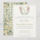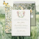 Convite de Casamento do Jardim de Flores Silvestres da Montanha. Este convite elegante e sofisticado tem um belo brasão de casamento romântico com flores de jardim de verão, pronto para suas iniciais personalizadas. Flores silvestres de montanha de verão em tons de rosa, azul, amarelo cremoso se espalhando em torno de um brasão de casamento verde sálvia. Este convite de casamento elegante tem uma bela caligrafia moderna em verde sálvia e dourado, pronto para personalizar e customizar com seus próprios nomes e informações de casamento. O verso do cartão apresenta um jardim de flores amarelas espiando através de uma treliça verde sálvia. Combine-o com um de nossos belos envelopes de Convite de Casamento do Jardim de Flores Silvestres da Montanha, cartões de save-the-date, rsvp ou detalhes. Uma Coleção de Casamento linda