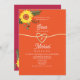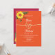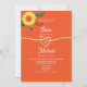 Moderno - convite para o casamento de cor laranja e magenta floral retro, elegante, boêmia, colorida, com corda de ouro romântica, girassóis, monograma de volta e caligrafia manuscrita.