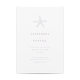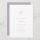 Esta design de casamento é uma mistura perfeita de elegância e vibes de praia. A característica principal do design é um pequeno motivo de estrela-lavanda que se senta graciosamente no centro do fundo branco colorido. O motivo do peixe-estrela é intricadamente projetado e adiciona um toque da natureza ao convite. A tipografia usada é uma fonte clássica, que adiciona um toque de sofisticação e garante que o texto seja fácil de ler. O estilo de fonte usado é limpo e moderno, criando um aspecto de eterno que nunca sairá da moda.