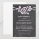 Convite para casamentos de Rosa doce e bonito em púrpura lilás apresentando um rosa adorável em uma vinha em um quadro de chalkboard. Este design elegante é perfeito para um casamento de primavera ou verão. Fácil de personalizar, basta adicionar os detalhes do casamento nos campos de texto fornecidos. Clique em "Personalizar" para encontrar mais opções de personalização.