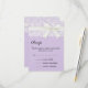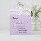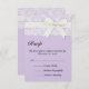 Este cartão de confirmação de presença para casamento apresenta um fundo lilás roxo metálico com uma imagem impressa de renda branca e fita no topo. Entre em contato para cores personalizadas.