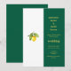 Convite de Casamento de Limão Verde Amarelo é uma escolha vibrante e refrescante para casais que planejam uma celebração alegre e inspirada na natureza. Com uma bela combinação de limões amarelos ensolarados e folhas verdes exuberantes, ele captura a essência de um casamento de primavera ou verão brilhante. O design vibrante de citrino adiciona um toque de elegância rústica e charme mediterrâneo ao seu dia especial. Impresso em papel cartão de alta qualidade, ele oferece detalhes nítidos e cores ricas e atraentes. O layout cuidadosamente organizado fornece espaço suficiente para todos os detalhes importantes do casamento em um formato fácil de ler. Perfeito para cerimônias de jardim, recepções ao ar livre ou eventos temáticos de limão, ele define instantaneamente um tom alegre e convidativo. Celebre sua história de amor com este encantador convite de casamento de limão que promete uma primeira