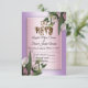 Cartão de resposta RSVP para convite de casamento com lírios calla em belo tom de lavanda e fundo com aspecto de cetim rosa. Composição de imagem e ilustração para convite de casamento formal elegante, aniversário, festa de noivado ou modelo de cartão de agradecimento. O texto é totalmente personalizável. Adicione sua informação ou altere completamente. Selecione uma fonte e cor diferentes. O modelo pode ser usado para qualquer ocasião especial. Basta alterar o texto para atender às suas necessidades. com detalhes ornamentais impressos.