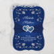Este romântico e dramático convite de casamento em forma de colchete floral azul e marinho prateado tem um IMPRIMIDO BRILHO, um par de diamante IMPRESSO e brilho juntou corações de joias e aparências metálicas de prata e marinho azul. ****POR FAVOR, OBSERVE que tudo será impressão como aparece no seu monitor; portanto, se você tiver problemas de digitação, alinhamento ou dimensionamento, entre em contato comigo para obter ajuda ANTES de solicitar. Não posso fazer nada quando o pedido for feito com Zazzle. Se precisar de outros itens correspondentes, envie um e-mail para niteowlstudio@gmail.com.