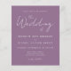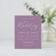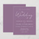 Este simples e moderno convite para o casamento, mostra um texto branco sobre um fundo mauve, com as palavras "o Casamento de" na caligrafia da caligrafia na moda. Adicione os nomes da noiva, noiva e detalhes do casamento em fontes brancas sans serif. O reverso é massa sólida.