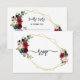 Design de cartão único e elegante com belos buquês de flores em aquarela merlot, burgundy e azul marinho, moldura dourada falsa, divisor floral, bela caligrafia, em fundo branco. Use a ferramenta Personalizar para adicionar suas informações, alterar fontes, cores e plano de fundo. Para itens correspondentes, visite minha Coleção Floral Merlot, Azul Marinho Dourado.