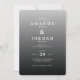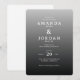 Este convite de casamento elegante apresenta um design minimalista com um fundo gradiente que transita de cinza claro para escuro, criando uma aparência sofisticada e moderna. A tipografia serifada limpa é centralizada para uma composição equilibrada, melhorando a legibilidade e a formalidade. Com sua paleta de tons de cinza discreta e impressão digital nítida, o convite transmite uma atmosfera de refinamento, perfeito para casais que buscam uma estética atemporal e sofisticada para o seu dia especial.