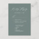 Cartão de Resposta de Casamento Minimalista em Verde Sage com Letra Elegante Moderna. Celebre seu dia especial com este design de convite de casamento elegante e lindo para embelezar sua ocasião especial. Todos os textos estão pré-organizados para você personalizar fácil e rapidamente com seus próprios detalhes.