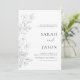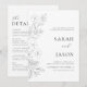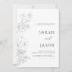 Convite de Casamento Floral Preto Minimalista Moderno com delicada arte botânica preta para um visual elegante e atemporal. Este convite de casamento frente e verso inclui um design de frente limpo com seus nomes e uma parte de trás totalmente personalizável para detalhes da cerimônia e recepção, informações de RSVP e site do casamento. Perfeito para casais que desejam um conjunto de papelaria de casamento moderno, sofisticado e minimalista com um toque de luxo refinado. Ideal para casamentos preto e branco, casamentos contemporâneos e temas florais elegantes.