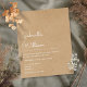 Convite de casamento simples rústico kraft com letra natural apresentando um design clássico que apresenta os nomes do casal feliz definidos em uma letra elegante acima dos detalhes especiais do casamento em um fundo rústico kraft natural. O verso apresenta um fundo rústico kraft natural correspondente. Criado por Thisisnotme©
