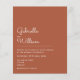 Convite de casamento econômico com letra elegante com um design clássico que apresenta os nomes do casal feliz em uma letra elegante acima dos detalhes especiais do casamento em um fundo terracota. Projetado por Thisisnotme©