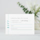 Torne o dia do seu casamento exclusivamente seu com o nosso modelo de cartão de resposta RSVP personalizável minimalista, apresentando uma paleta de cores branca e azul turquesa brilhante e divertida. Este cartão de resposta tem um espaço para os convidados escreverem nomes e necessidades alimentares. Personalize o seu convite com texto facilmente editável!