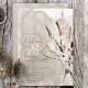 Este design apresenta um fundo simples de respingo de aquarela marrom acinzentado com um buquê boho rústico de gramíneas marrons, pretas, bege e cinzas e rabos de gato amarrados com uma fita preta. Perfeito para o outono, mas lindo em qualquer estação! Este design faz parte da Coleção de Convites de Casamento Modernos Buquê Boho Rústico criada pela Simply Farmhouse Press.