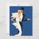 Ilustração vintage detalhe de um pôster de viagem art nouveau europeu de Monte Carlo em Mônaco com um design de amor e romance com uma noiva e noivo elegantemente vestidos. A senhora está usando um vestido de noite ou de casamento elegante e o cavalheiro está usando um smoking e cartola.