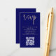 Cartão de Resposta de Casamento em Azul Marinho com Letra Dourada e Código QR Champagne Moderno. Um tamanho mini para incluir com seus convites. A cor da fonte e as cores de fundo podem ser alteradas através do menu de edição. O código QR é uma maneira conveniente para que seus convidados respondam online. Basta digitar a URL da página de resposta do seu site de casamento e seu código QR será gerado automaticamente.