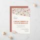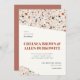 Este convite de casamento moderno apresenta detalhes de pedra terrazzo do momento e tipografia inspirada no meio do século, tornando-o uma ótima escolha para um museu de arte ou local moderno de meados do século e um casal sem frescuras, moderno e na moda que está se casando. Uma paleta de cores de tons inspirados no deserto, como creme, blush, mauve, ferrugem e azul-marinho, parece neutra, mas cheia de personalidade.