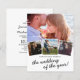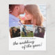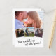 Convites de casamento elegantes em papel com fotos, apresentando um fundo branco elegante, 4 fotos do casal feliz, um coração de amor e um modelo de casamento moderno que é fácil de personalizar.