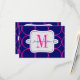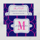 Cartão de RSVP de Convite de Casamento Moderno Rosa Fúcsia e Azul Marinho com Inicial do Monograma e padrão de círculo em negrito. Personalize com suas informações e escolhas de cores. Você pode alterar a cor do fundo dos círculos no padrão usando o menu de edição e alterando a cor do fundo. Elke Clarke©
