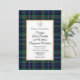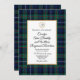 O convite para casamento na rodovia na moda da Escócia feito no padrão tradicional de xadrez verde, azul, vermelha e branca do clã Robertson tartan. Uma área de texto branco de borda dourada tem um escudo decorativo de tom dourado, no topo, com um monograma de letras solteiros. Personalize todo o texto para atender às suas necessidades de casamento. Os produtos correspondentes estão disponíveis.