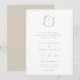 Monograma de Crest Botânico, convite de casamento. Vintage inspirou crista adornada com galhos botânicos. Recursos, elegante e elegante estilo de tipografia bege, design, combinação de script e tipo negrito.