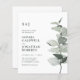 Orçamento Eucalyptus QR Code RSVP White Monograma Convite de Casamento. Nosso convite de casamento botânico simples para baratos apresenta uma elegante ramificação de eucalipto com aquarela em tons de sábio e verde empoeirado ao lado do monograma e texto de convite. A parte traseira do convite também exibe o código QR do seu site de casamento, assim como o próprio URL do site, permitindo que seus convidados RSVP online sejam facilmente visualizados e todos os detalhes normalmente enviados em um pacote de casamento. O código QR atualizado neste convite permite gerar o seu próprio código QR do site de casamento simplesmente digitando o URL do seu site na modelo de personalização onde indicado. Todo texto de exemplo pode ser facilmente revisado com suas próprias informações sobre o modelo de personalização.