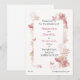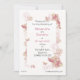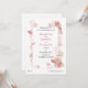 Este convite de casamento moderno tem motivos florais e de borboletas em tons de rosa.
