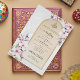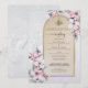 Convite de Casamento Islâmico de Luxo com Bismillah | Floral de Blossom de Aquarela Rosa, Arco Dourado e Cartão de Nikah com Brilho de Pérola com Nomes dos Pais e Avós.