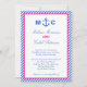 Este convite moderno é ideal para celebrar um casamento com um tema náutico. Ele apresenta uma âncora no centro com as iniciais da noiva e do noivo em cada lado. Uma sólida borda de listras cor-de-rosa e azuis dá-lhe um impacto visual para uma aparência elegante mas ousada. Excelente para um casal na moda. Entre em contato com "marlenedesigner" se quiser uma alteração de texto ou de cor neste design.