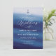 design do tema do casamento do mar azul com uma elegante letra de escrita branca. O texto preto e outros recursos deste modelo de convite de casamento podem ser personalizados.