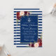 Convite de casamento náutico com listras azuis e b
