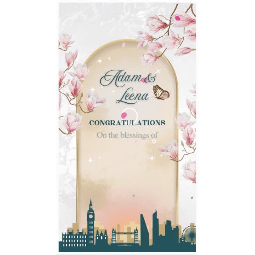 Convite de Casamento Nikkah Elegante com a Sagrada Bismillah, Brilho de Mármore e Arte de Magnólia em Aquarela.