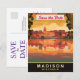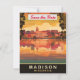 Destaque o charme cênico à beira do lago do Estado do Texugo com essa vibrante e histórica silhueta. Essa arte turística clássica de alta qualidade é perfeita para um elegante casamento no Meio-Oeste ou para um aviso de data de Madison.
