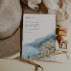 Convide seus convidados para celebrar seu amor com este elegante design de casamento no destino da Costa Amalfitana. Com uma ilustração em aquarela suave de uma mesa de recepção à beira-mar e uma vila na encosta da colina, este convite captura a romance de uma celebração costeira italiana.