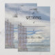 Um adorável convite de casamento com cenário do oceano que permite preencher os espaços em branco. O papel é fosco e inacabado, permitindo escrita. A frente é para o seu anúncio e já há um bilhete de "obrigado" no verso.