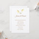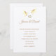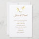 Este convite de casamento é mostrado em um layout clássico em um fundo Branco com uma escolha de papel de 110 lb. papel feltro. Gráfico de Duas Pombas cor Dourada com Dois anéis cor Dourada no topo. Texto em cor Dourada. Personalize este item pegando o texto de exemplo e colocando suas informações nele.