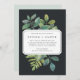O convite de casamento botânico da Vintage mostra os detalhes do seu casamento em letras modernas, não-pretas, de cor verde-clara, galhos e samambaias pintados. Um fundo escuro e rico adiciona drama e elegância.