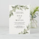 Celebre seu dia especial com este elegante convite de casamento com ramo de oliveira, inspirado na beleza atemporal dos casamentos mediterrâneos e italianos. Compondo uma suave folhagem em aquarela e um layout minimalista e limpo, este design cria uma primeira impressão romântica e refinada.