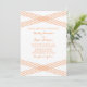 Convite de Casamento elegante e simples com um design art déco de listras entrecruzadas em laranja. Este convite clássico pode ser facilmente personalizado com os detalhes do seu casamento. Para mais opções de personalização, clique no botão Personalize.