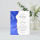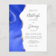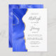 A borda esquerda deste elegante convite de casamento moderno apresenta uma borda de ágata azul real com pintura à aguada, aparada com brilho dourado falso. O texto personalizável combina fontes manuscritas, copperplate e itálicas em cinza carvão em um fundo branco. O verso apresenta um design correspondente de ágata azul real e dourada.