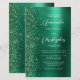 A borda esquerda deste convite de casamento moderno e elegante apresenta uma falsa borda brilhante esmeralda verde. O texto personalizável combina fontes de letra manuscrita branca e sem serifa em um fundo de metal cinzelado verde. O verso apresenta um design correspondente de brilho verde e metal cinzelado.