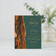 A borda esquerda deste convite de casamento moderno e elegante apresenta uma borda de ágata em tons de laranja queimada e ferrugem, aparada com brilho falso dourado. O texto personalizável combina caligrafia dourada, fontes copperplate e itálico em um fundo verde esmeralda escuro. O verso apresenta um design correspondente de laranja queimada, ferrugem e ágata dourada.