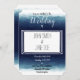 O convite para casamento de gradiente Blue Ridge Mounains com seus nomes enquadrados e sobrenome rubricados no verso.