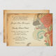 Este Convite de casamento bonito e moderno tem um tema de flores antigas. À direita, há um design de espiral verde, vermelho, castanho, bronzeado, amarelo-acinado, com um fundo castanho e castanho em apuros. À esquerda, os detalhes da cerimônia de casamento são facilmente personalizáveis com seu texto. Este design tem um design de tatuagem que se adequaria a um casamento tradicional ou um casamento gótico.