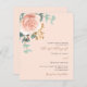 Um fundo cor de pêssego. Decorados com folhas de eucalipto florais, verdes e de cor rosa, de cor aquosa, de galhardetes, de verde e de ouro falso. Personalize e adicione seus nomes e detalhes do casamento. 1 folha = 1 convite impresso de borda a borda.