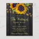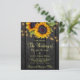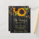Celebração de casamento na Rússia e na moda de recepção barato convite para modelo no fundo de madeira marrom-escura apresentando grandes buquês de girassol de ouro amarelo, cordas de luzes cintilantes e um falso roteiro de tipografia de ouro. +++++++ Se precisar de ENVELOPES, selecione a opção ENVELOPE! ++++++++++ Fácil de personalizar com seus detalhes! +++++++++++ O convite é adequado para casamentos de campo rústico em quintais exteriores.